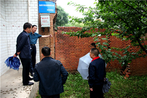雨季汛期来临正是地质灾害体滑坡频发阶段,6月5日上午,地矿集团公司副总经理、陕西省地质灾害应急排查队队长马贵锁、陕西省地质灾害应急排查队总工程师王振幅及相关人员组成的检查组,冒雨前往西安灞桥区王家坡地质灾害隐患监测点检查工作。物化探队党委书记、执行董事、总经理王新坪,以及物化探队西安地治灾害智能检测预警技术服务中心负责人和有关人员陪同检查。