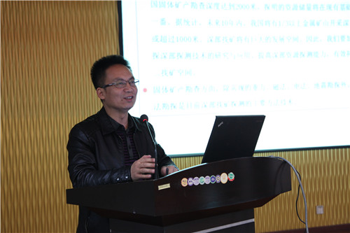 物化探队总工程师刘建利作了《大功率重叠场源张量CSAMT方法技术及应用》的报告。