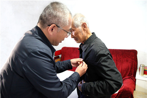 许俊贤同志祖籍陕西泾阳,抗美援朝后转业到地方工作,1975年调到物化探队工作。23日上午,李新胜来到老战士许俊贤家中,郑重地为年近九旬的老人佩戴纪念章,并亲切交谈,关切询问他的生活起居、健康状况等情况,代表物化探队党委向许俊贤老人表示亲切慰问,对许俊贤老战士为保卫祖国、捍卫和平作出的奉献与牺牲致以崇高敬意。