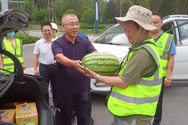李新胜一行为一线职工送去了西瓜、饮料等夏季防暑降温物品,同时鼓励大家继续发扬不怕苦、不怕累、攻坚克难的地质精神,为公司的发展贡献力量。