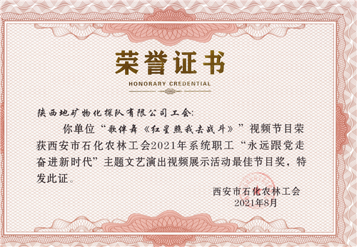 活动启动后,队工会积极响应,向上级工会报送主题鲜明的“歌伴舞《红星照我去战斗》”视频节目参与其中。经过评审组综合评定,在报送的58个节目中我队视频获得优秀节目奖、最佳节目奖、优秀组织奖三项殊荣。