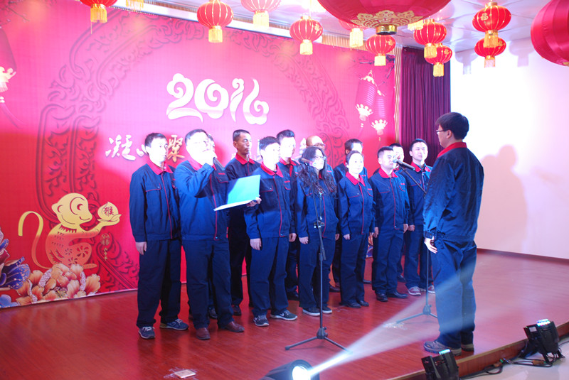 伴随着炫动的灯光,激情的音乐,晚会在一支红红火火的“开门红”舞蹈中拉开序幕,来自机关各科室的近十名青年职工,用热辣动感的舞步瞬间沸腾了晚会现场,昭示着物化探队天天开门红,欢快的旋律、热情的呐喊,让晚会变成了一个“欢乐的海洋”,接下来的诗朗诵“新春颂”,表演热情洋溢,共同祝愿物化探事业永远与春天同行!铿锵有力的合唱《勘探队员之歌》,唱出了物化探队职工为了地质事业砥砺奋进、无私的奉献的崇高精神。女声独唱《谢谢你让我这么爱你》温情浪漫,别出心裁的《相信自己》亮出青春、坚定信心,相信2016我们一定能赢,把晚会推向高潮。白林科为晚会助兴演唱了《男人哭吧不是罪》,激情的演唱博得了在场观众的阵阵掌声。《父亲的草原母亲的河》表达了物化探人连续8年奋战在内蒙古巴丹吉林沙漠的深厚感情,他们真正是地质一线的《真心英雄》,《我的好兄弟》唱出了物化探队青年人的地质情、战友情,《北京颂歌》象征着团结、凝聚着力量。《众人划桨开大船》表现了物化探人齐心合力、坚定信心、开拓创新,赢战2016 ,走向希望,并将演出再次推向高潮,更是点燃了现场干部职工的热情,激起了一浪高过一浪的喝彩与欢呼,也给广大干部职工留下了一段难忘的欢乐时光。晚会结束后,白林科、王新坪、贺志银为获奖节目进行了现场颁奖。