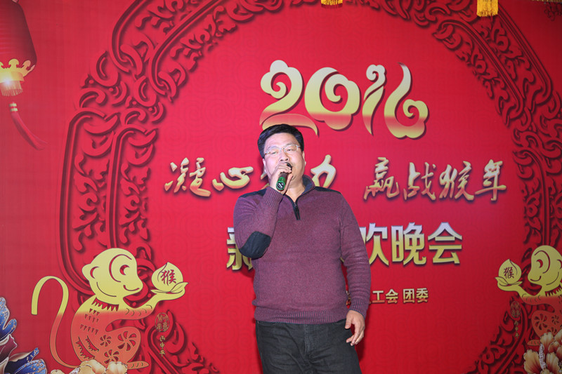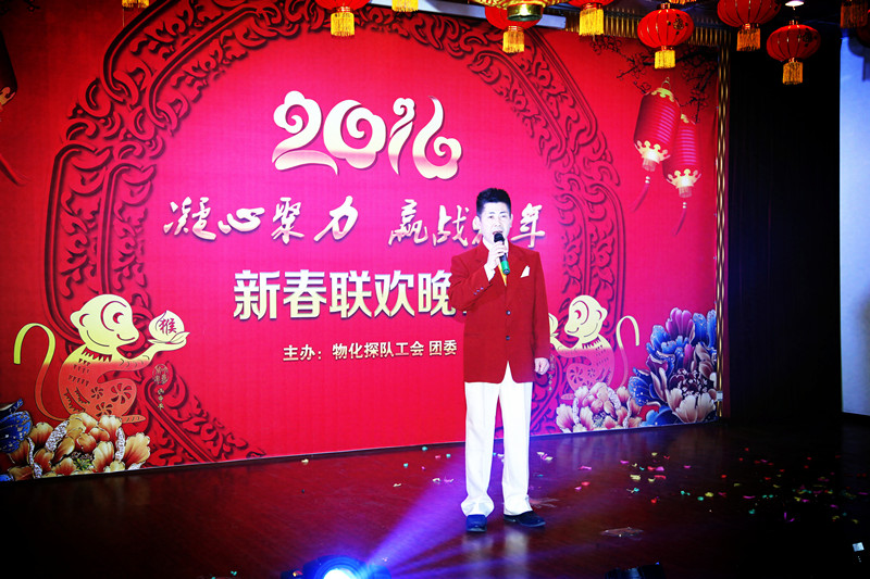 队长王新坪致新春贺词,他说:2015年在总公司的正确领导下,物化探队创新发展,各项工作取得了显著的成绩。2016年按照总公司的新要求和物化探队“大地质 大物探 大发展”的经营思路,凝心聚力,攻坚克难, 赢战2106。全体干部职工一定要奋力搏击,敢于担当,携手同心,用智慧和汗水共谱物化探队新篇章!王新坪代表物化探队领导班子,祝全队职工在猴年来临之际,身体健康,阖家幸福,生活美满,事业有成。
