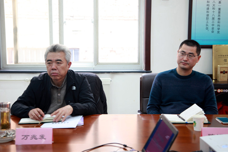 1月16日,物化探队召开2016年度领导班子民主生活会。地矿集团公司党委委员、副总工程师万兆发和地矿集团公司纪委委员、审计部主任陈诺余一行到会指导并作点评讲话,物化探队领导班子成员参加了会议。