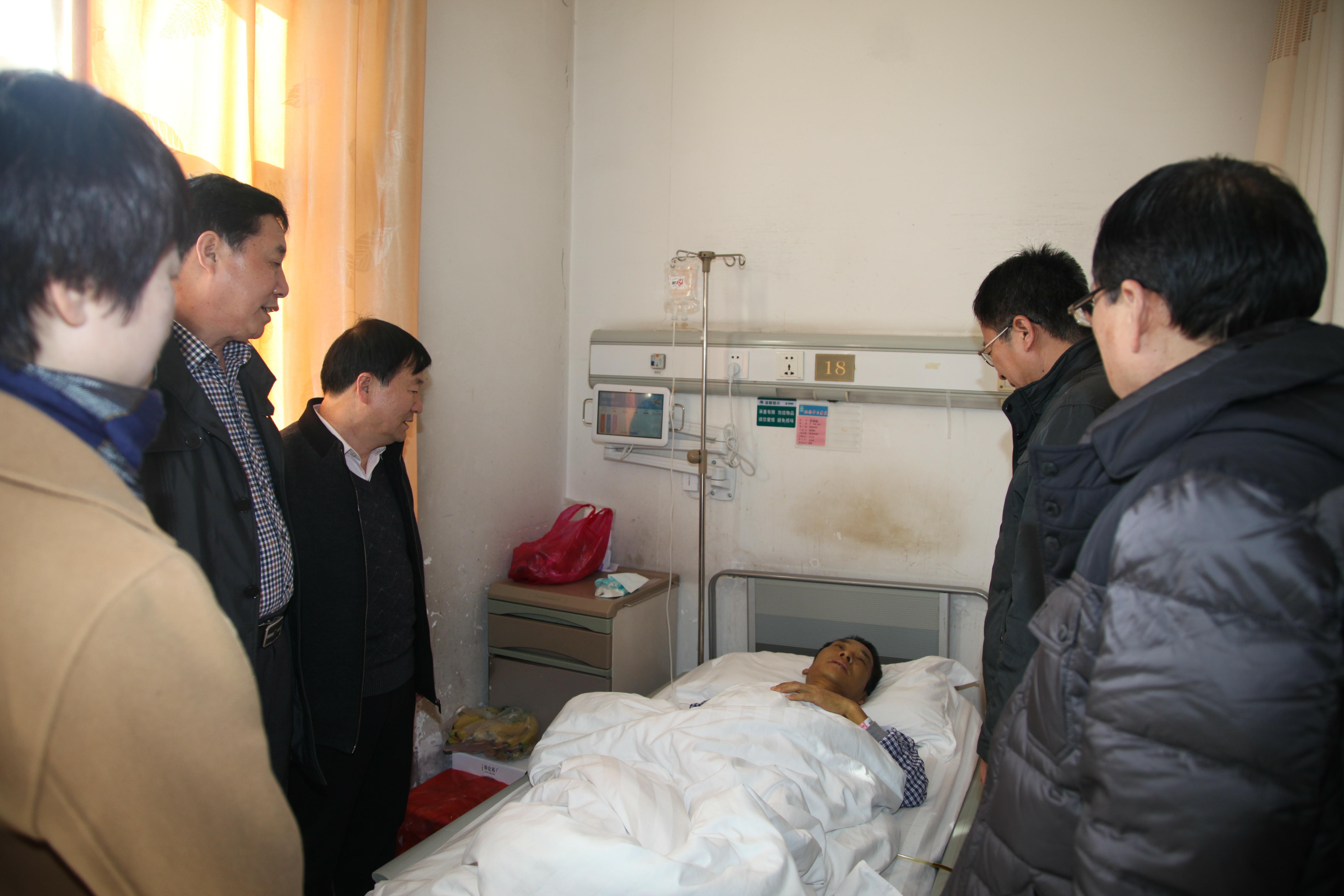 2月11日,集团公司党委副书记安增会和行政工作部主任冯钰、离退休管理所主任李崇勇一行三人,在队党委书记、执行董事、总经理王新坪等陪同下,到西京医院看望慰问了物化探队住院困难职工程领岐。