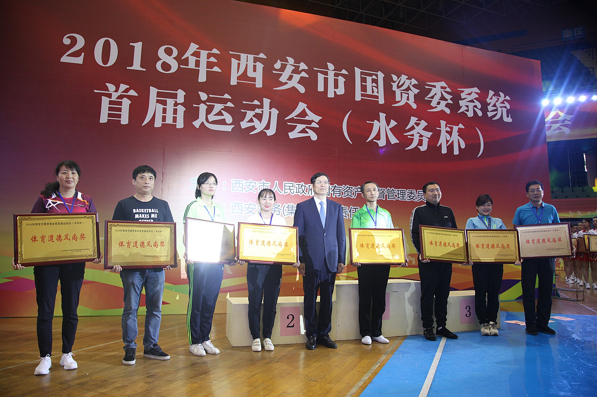 2018年9月19,西安市国资委系统首届运动会在西安市运动公园体育馆如期举行。我队按组委会要求派出了包含旗手在内的21人方阵出席了开幕式。比赛经过3天激烈的角逐,于21日圆满闭幕。闭幕式上举行了颁奖仪式,我队喜获“体育道德风尚奖”。