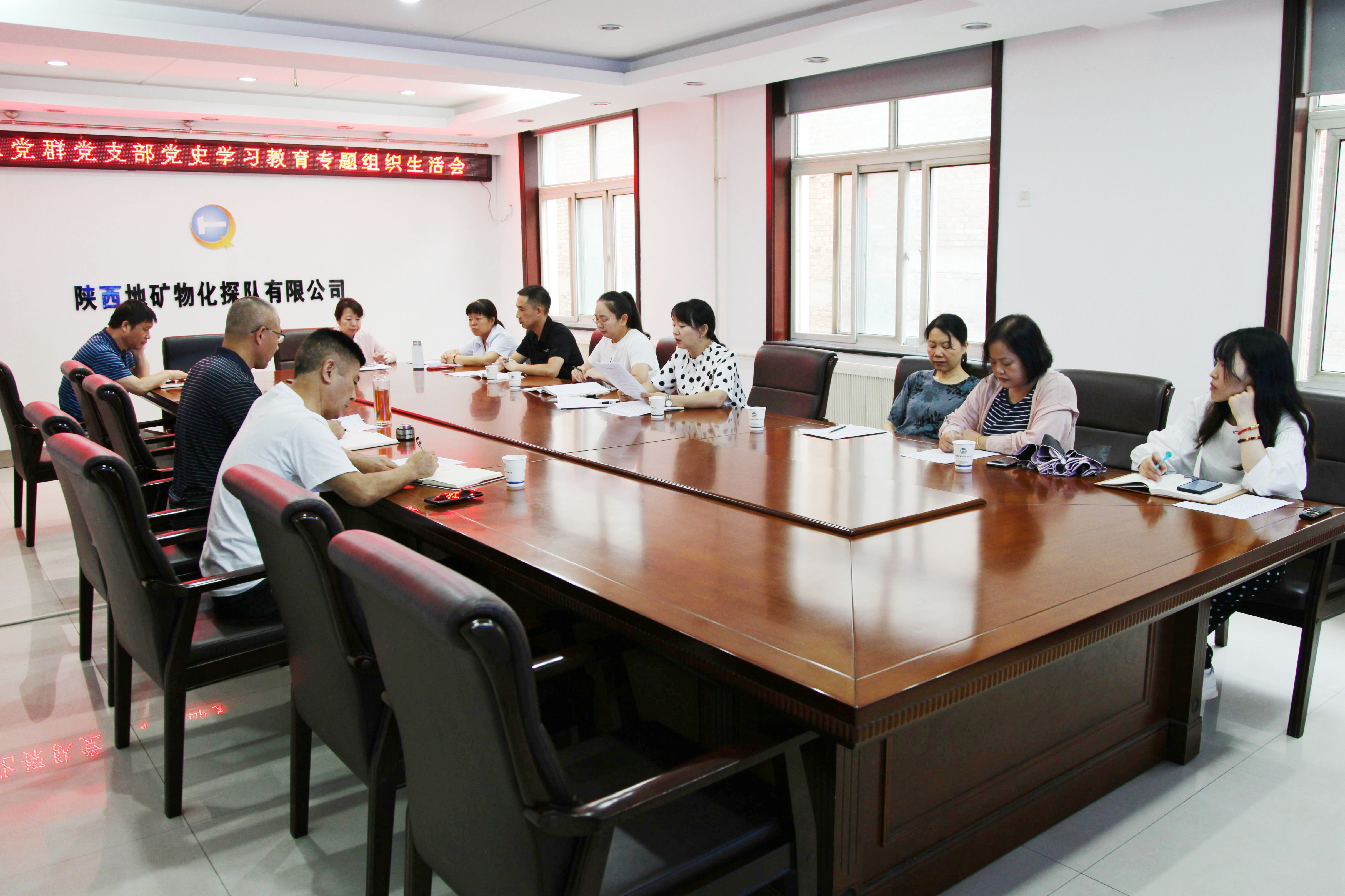8月13日,物化探队党委书记、执行董事、总经理李新胜参加党群党支部党史学习教育专题组织生活会并作点评讲话。党群党支部党员参加会议。