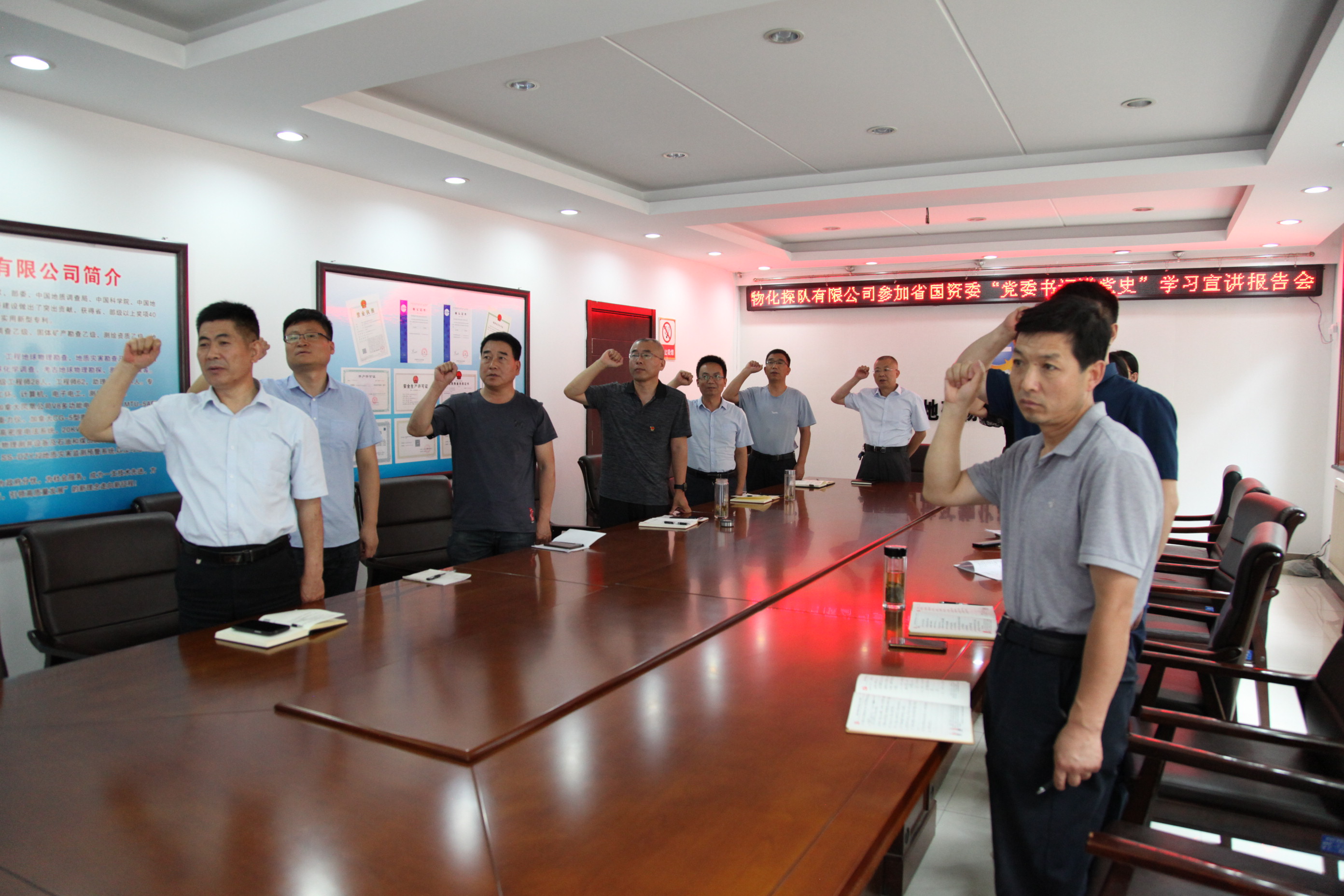 6月23日上午,物化探队有限公司班子成员和支部书记参加了省国资委系统“党委书记讲百年党史”系列党课宣讲报告会(第十讲)。省国资委党委书记、党史学习教育领导小组组长刘斌以《扛起国有企业时代责任 致敬中国共产党成立100周年》为题,为系统党员干部“党委书记讲百年党史”系列党课活动画上了圆满句号。报告会以视频会形式在二楼会议室召开。